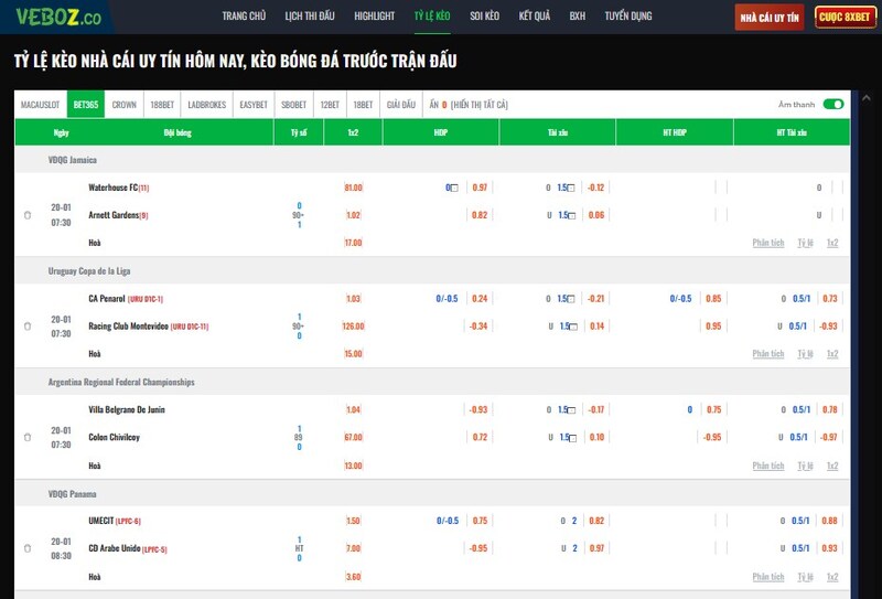Tỷ lệ kèo tại Vebo Link cập nhật liên tục và real-time