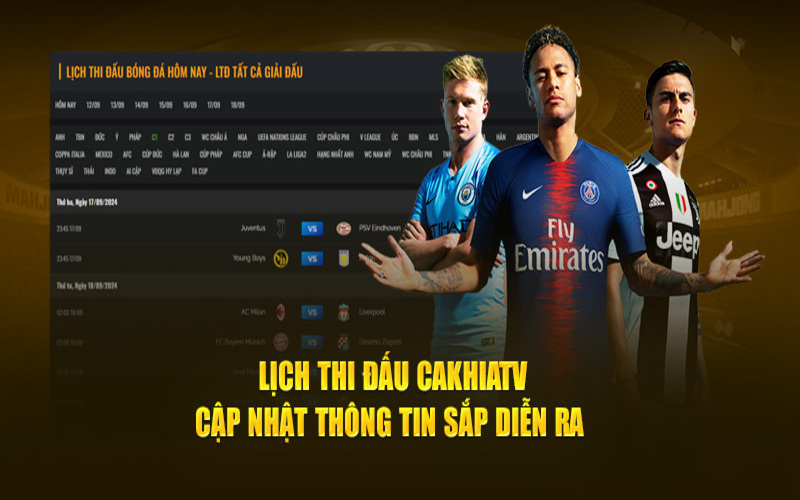 Trang web CakhiaTV cập nhật lịch thi đấu trực tuyến cho các giải đấu hàng đầu