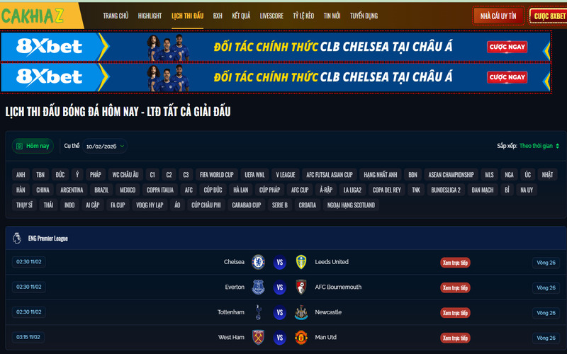 Cakhia TV cập nhật lịch thi đấu đầy đủ mọi giải đấu