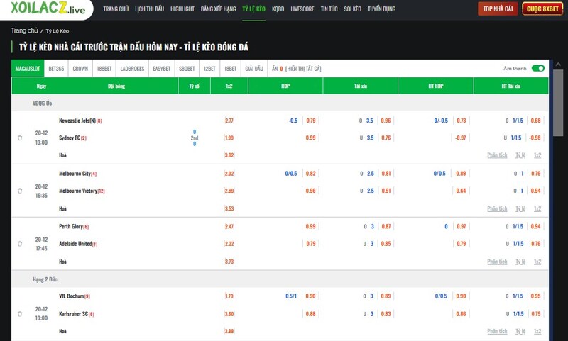 Tỷ lệ kèo ma cao luôn được ưu tiên hiển thị trên Xoi Lac TV