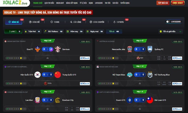 Điểm đầu tiên khiến mình đánh giá cao Xôi Lạc TV chính là trải nghiệm xem trực tiếp bóng đá rất “đúng chất”. Ngay khi truy cập, các trận đang diễn ra, sắp đá hay những trận tâm điểm trong ngày đều được hiển thị rõ ràng. Cách sắp xếp này cực kỳ phù hợp với anh em xem bóng đá thực tế, không có nhiều thời gian lọc từng giải hay dò từng khung giờ.